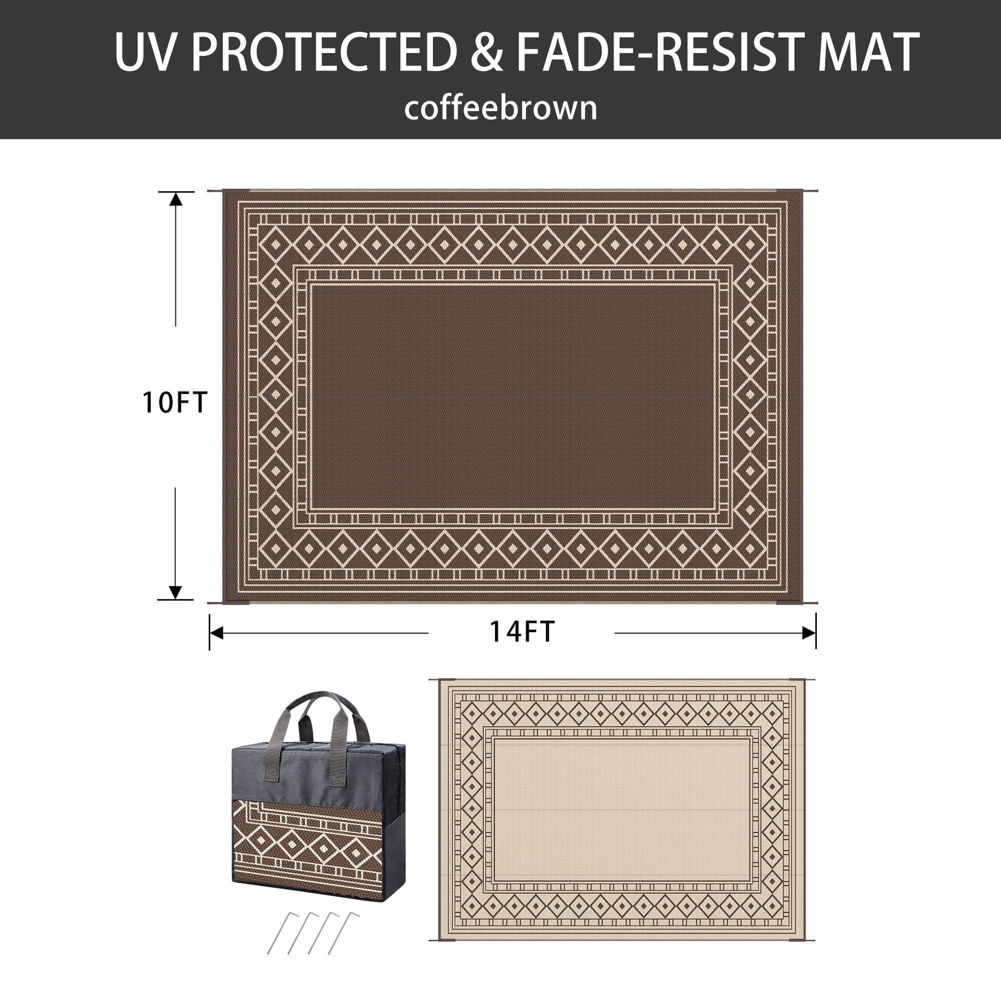 DEORAB 10'x14'Outdoor Rugs Waterproof Reversible Plastic Carpet Camping Patio Outside Mat,Coffee & Brown