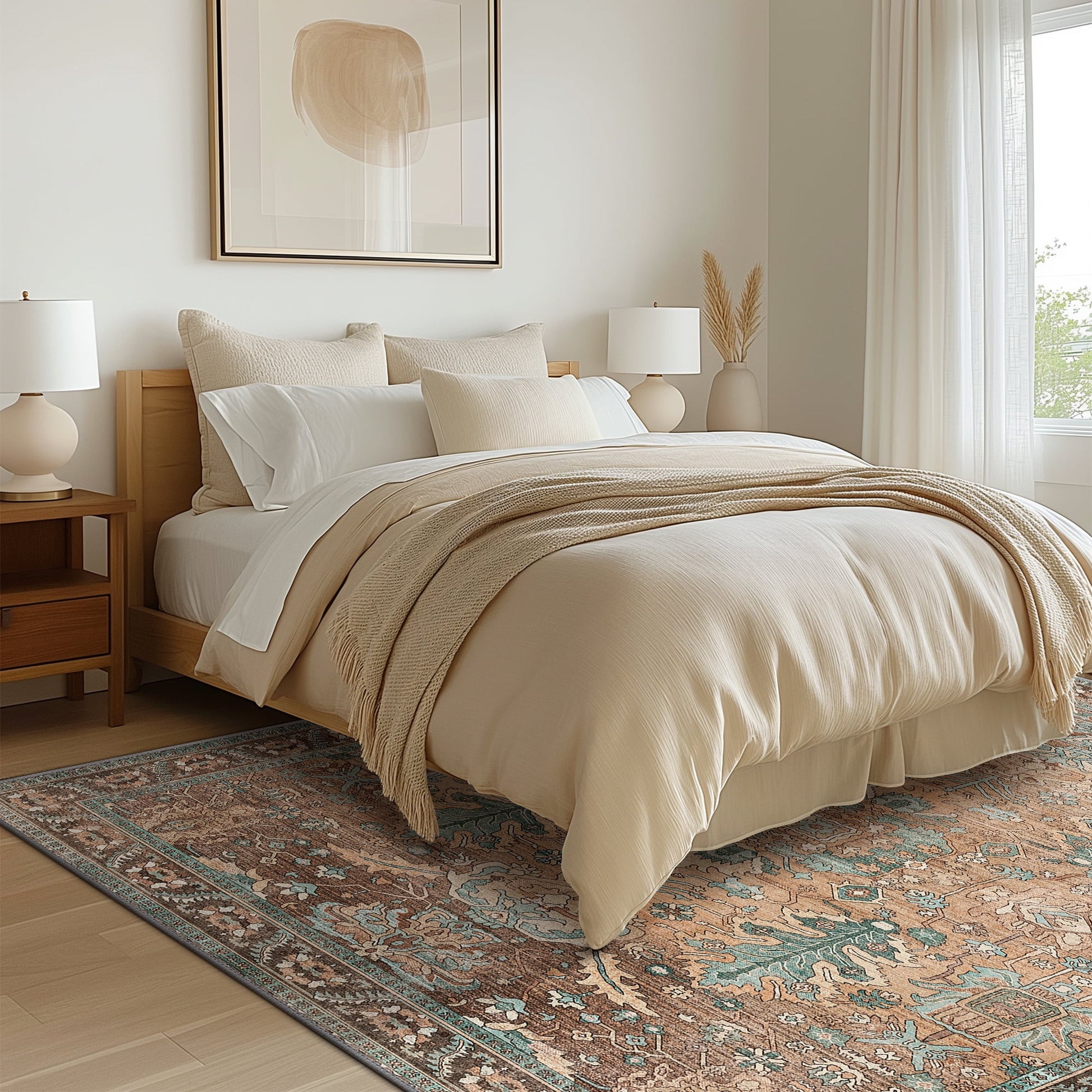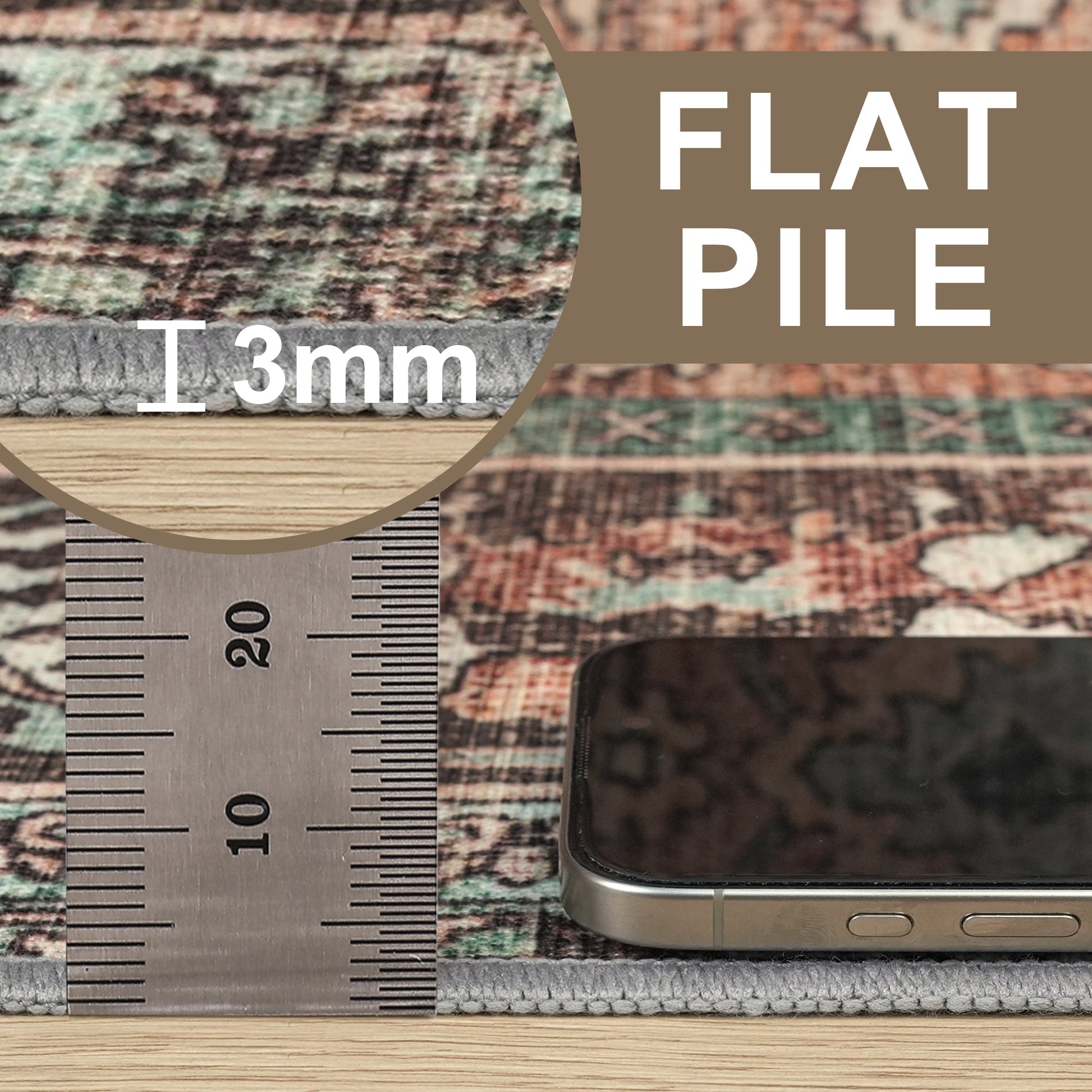 DEORAB 3X5 Area Rugs for Living Room, Machine Washable Bedroom Rugs Distressed Vintage Print Large Throw Rug Dining Room Aesthetic, Non Slip Carpet with Gripper, Ultra-Thin
