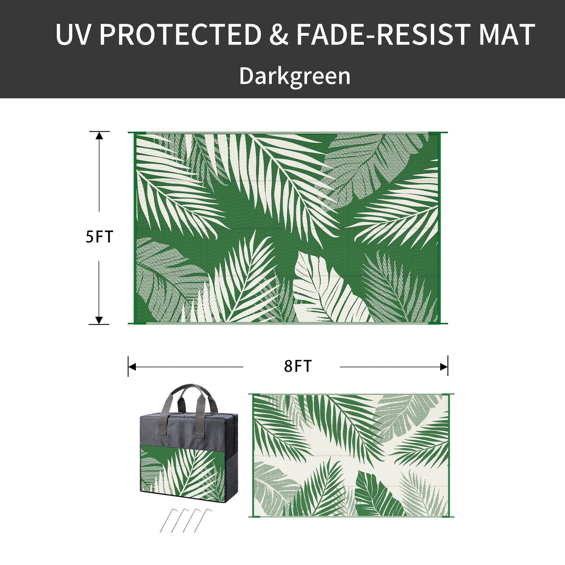 DEORAB 5'x8' Outdoor Rugs Waterproof Patio Lightweight Reversible Plastic Carpet Outside Camping Mat,DarkGreen