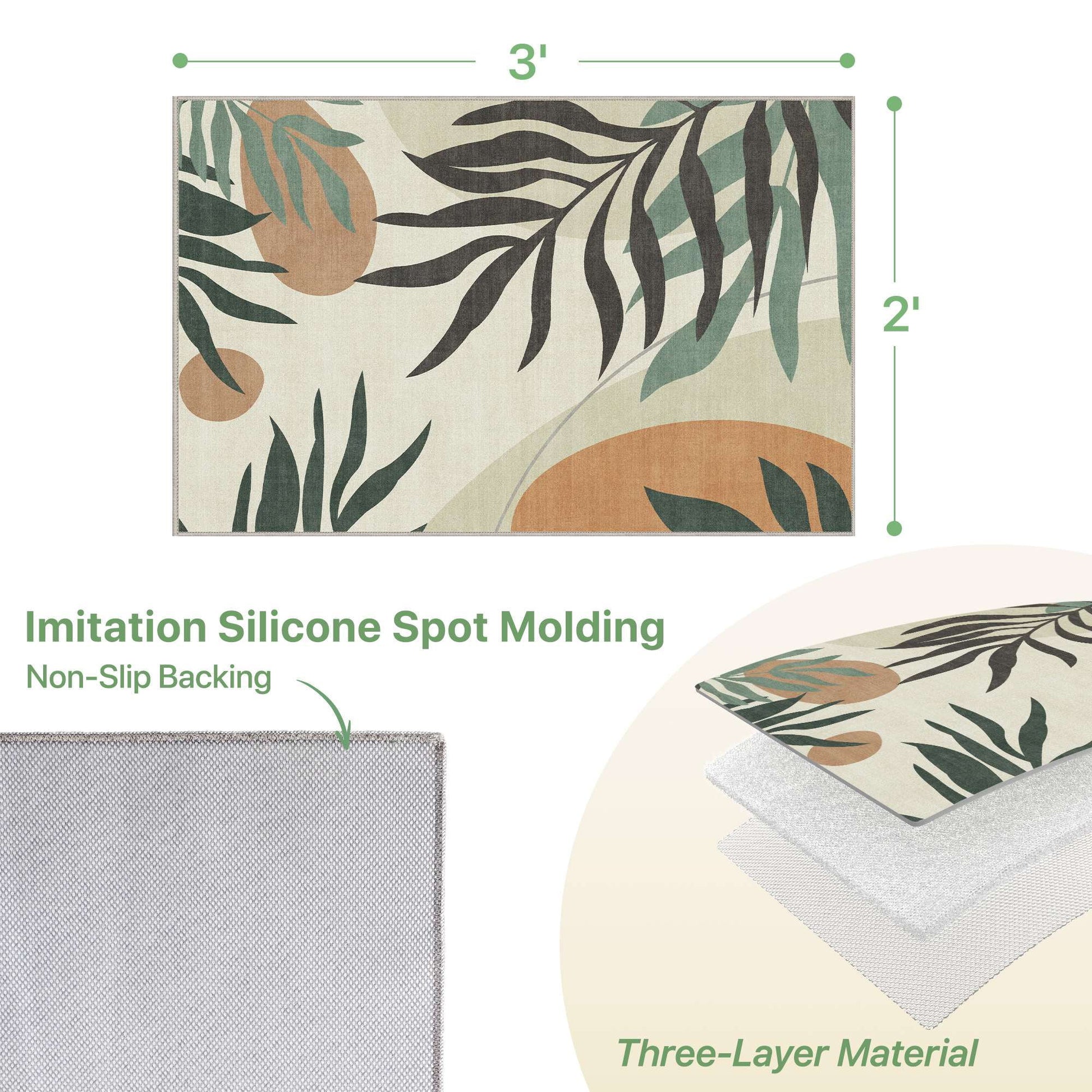 DEORAB Outdoor Rug 2'X3' Chenille Patio Carpet Three-Layer Material Imitation Silicone Spot Molding Camping Outside RV Mat,Beige&Green