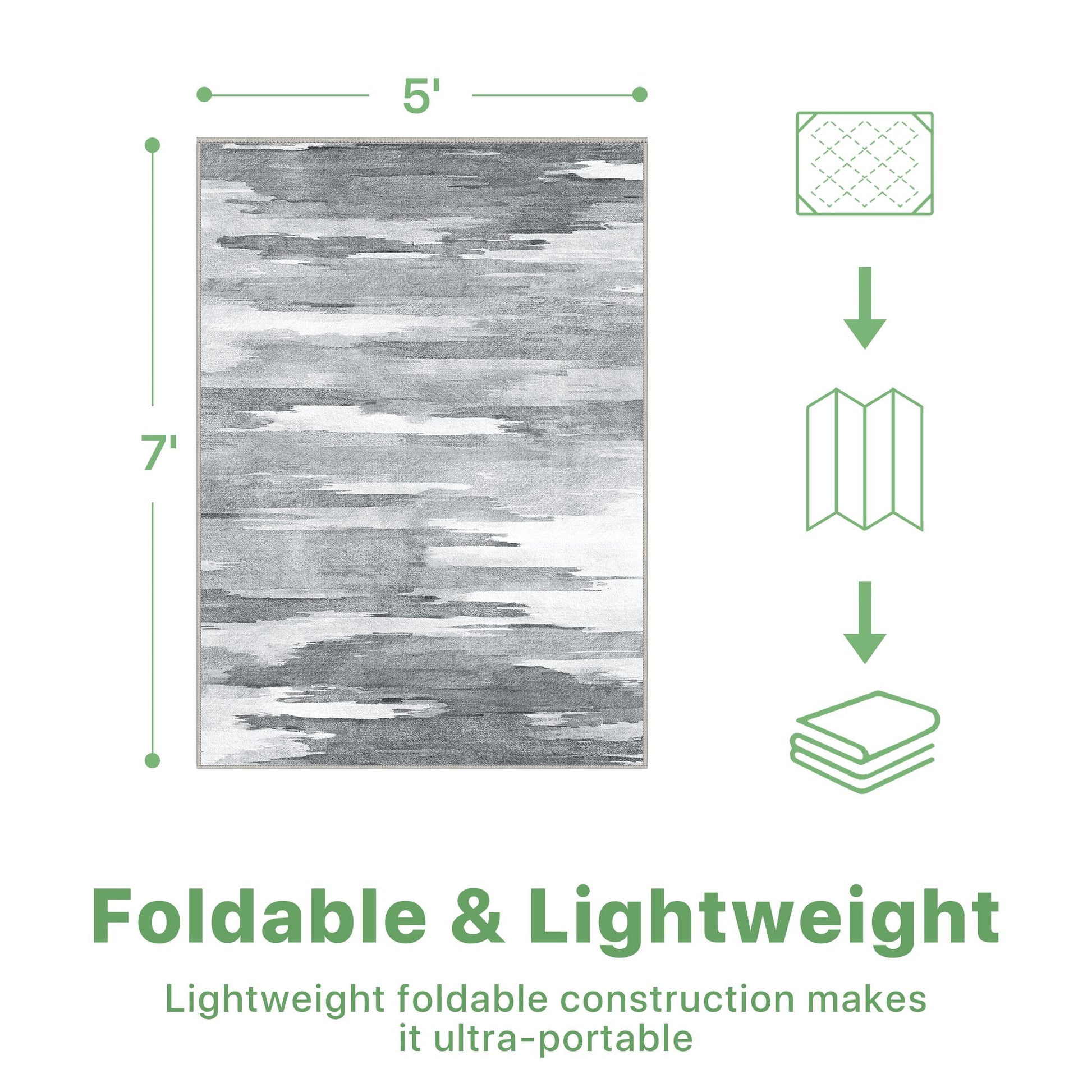 Material: Polyester Color: Greywhite Size: 5x7 FT 【EASY CLEARING】The low pile outdoor rug is stain resistant, simply toss it in the machine for a quick wash, and line dry or dry on an air-only cycle without heat. We recommend line drying or drying without heat on an air-only dryer cycle. A low heat iron can be used if needed. 【NON-SLIP BACKING】Our patio rug non-slip backing is molded with faux silicone spot molding, which is great for enhancing the friction between the mat and the ground or deck floor. It enhances the anti-slip without damaging the lawn and deck. It can be well used in a variety of outdoor scenarios. 【SAFE & DURABLE】DEORAB outdoor carpet is made of cozy chenille material,featuring a beautiful appearance,while it won't shed and easy to clean.And there is no need to worry about pet's paws scratch or get hooked on chenille outdoor rug. 【UV RESISTANT】Our outdoor rug ensures durability and long-lasting beauty when placed in any high traffic areas. This area rug is UV-resistant, durable and perfect for outdoor use. 【VERSATILE USE】Ideal for picnics, barbecues, or simply lounging outside, this outdoor rug adds comfort and style to any outdoor gathering, making it a must-have addition to your patio decor.This camping rug is heavy enough that it won't be easily blown away by the breeze.