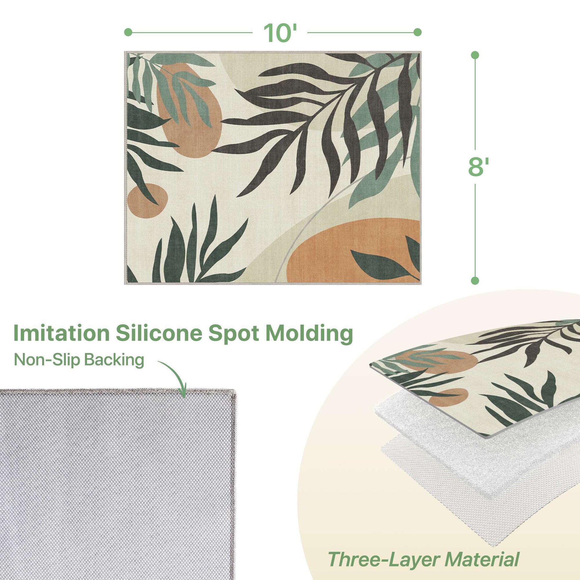 DEORAB Outdoor Rug 8'X10' Chenille Patio Carpet Three-Layer Material Imitation Silicone Spot Molding Camping Outside RV Mat,Beige&Green