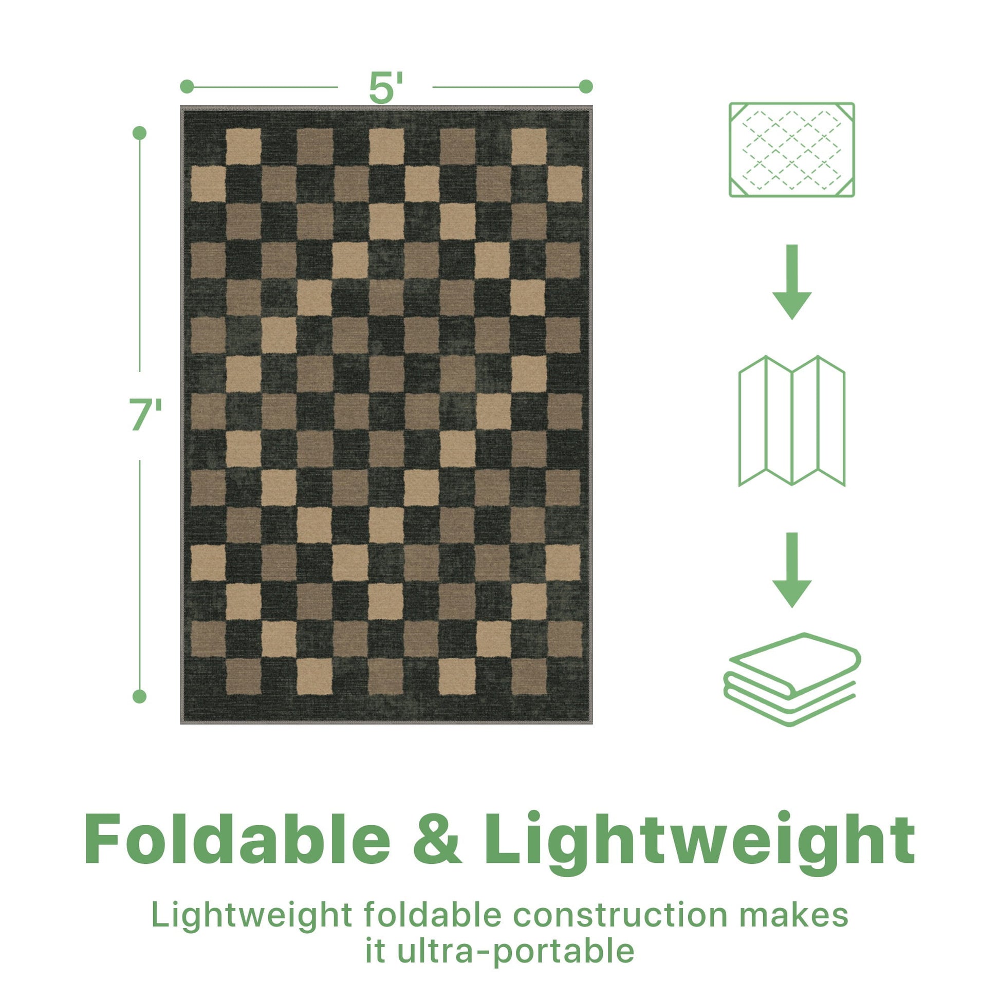 Material: Polyester Color: blackbrown Size: 5x7 FT 【EASY CLEARING】The low pile outdoor rug is stain resistant, simply toss it in the machine for a quick wash, and line dry or dry on an air-only cycle without heat. We recommend line drying or drying without heat on an air-only dryer cycle. A low heat iron can be used if needed. 【NON-SLIP BACKING】Our patio rug non-slip backing is molded with faux silicone spot molding, which is great for enhancing the friction between the mat and the ground or deck floor. It enhances the anti-slip without damaging the lawn and deck. It can be well used in a variety of outdoor scenarios. 【SAFE & DURABLE】DEORAB outdoor carpet is made of cozy chenille material,featuring a beautiful appearance,while it won't shed and easy to clean.And there is no need to worry about pet's paws scratch or get hooked on chenille outdoor rug. 【UV RESISTANT】Our outdoor rug ensures durability and long-lasting beauty when placed in any high traffic areas. This area rug is UV-resistant, durable and perfect for outdoor use. 【VERSATILE USE】Ideal for picnics, barbecues, or simply lounging outside, this outdoor rug adds comfort and style to any outdoor gathering, making it a must-have addition to your patio decor.This camping rug is heavy enough that it won't be easily blown away by the breeze.