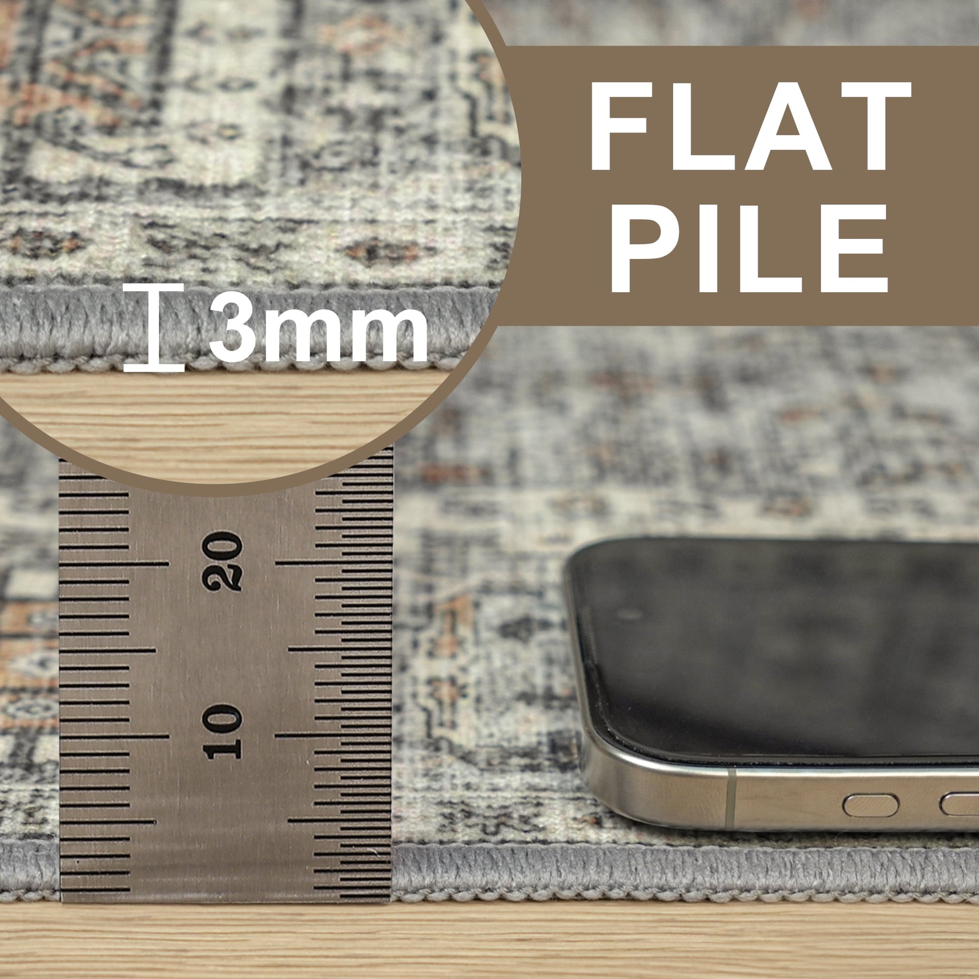 DEORAB Runner Rug 2X10 Non Slip Hallway Vintage Rugs, Machine Washable Lightweight Mat for Living Room, Entryway, Bedroom, Kitchen and Passage, Ultra-Thin, Light Gray